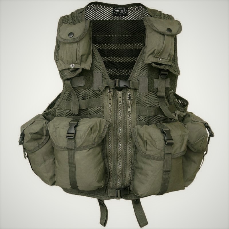 Moduláris taktikai mellény hálós hálóval a jobb légáramlás és a magas viselési kényelem érdekében. Ezenkívül 3 rejtett zsebbel van felszerelve: 1 késnek és 2 cipzáras zsebbel elölről. A hátoldalon állítható húzózsinórok találhatók, mindkét oldalon 3 db. A mellény tökéletesen illeszkedik. Lehetőség van további kiegészítők, például tokok, zsebek és táskák hozzáadására. (G17, G19, Beretta, SigSauer, P99, HK USP, CZ, HK-P8, Colt vagy hasonló méretű pisztolyok szállítására.)