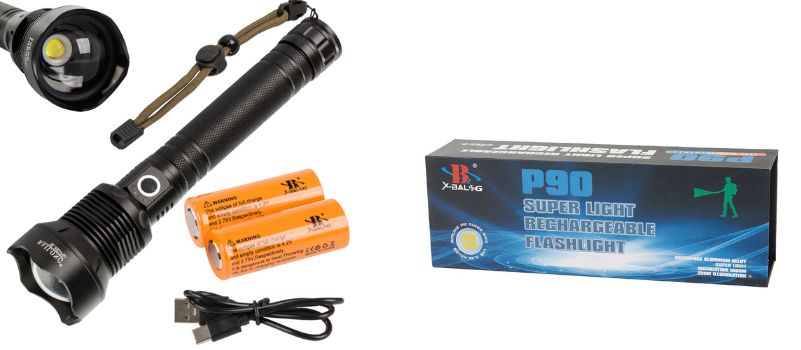 A zseblámpa háza repülőgépes alumíniumötvözetből készült, a piacon elérhető legerősebb ötvözet. Felülete csúszásgátló szerkezetű. A legmodernebb CREE P90 LED-del van felszerelve. Ez egy félvezető dióda, amely bárkit elvakít. A dióda élettartama 100.000 óra. Hossz: 250 mm Hosszúság kicsinyítéssel: 275 mm Átmérő: 35 mm Lencse átmérő: 60 mm Műszaki adatok: Hatótávolság: 1000 m-ig Működési mód: 100%, 50%, villogó Állítható zoom: bővíthető Fényteljesítmény : 12 500 Lumen Ház: repülési alumínium Borítás: eloxált bevonat Súly: 345 g Tápellátás: újratölthető akkumulátor (tartozék)